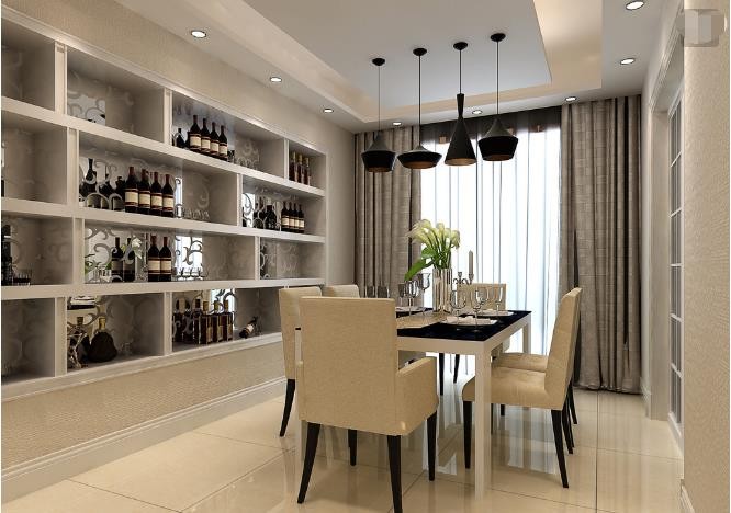 2. 餐厅相对于家居的其他场所,更应力求空气流畅环境整洁。不可放置太多的装饰品。而软装饰较适合餐厅的布置。清新、优雅的布艺制品,尤其是较薄的化纤类材料为好选择。因为厚实的棉纺类织物极易吸附食物气味且不易散去,不利于餐厅的环境卫生。
