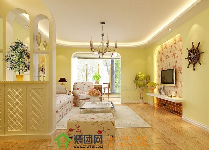沙发、茶几 多选择纯实木(常用白橡木)为骨架、外刷白漆,配以花花草草的面世软垫,坐起来舒适而不失美观,造价比较高,单人的估计在2000-4000元左右,这种沙发选用配套茶几即可;2,另外还有那种比较常用的全布艺沙发,这种沙发多没有拐角,以二人及三人为主,图案多以花草为主,颜色均较清雅,配以木制浅纹路茶几;特别注意的是如果屋内的装修比较花哨,那也有人配以纯木制条格椅,刷上白漆,更能体现出田园的自然、和谐。