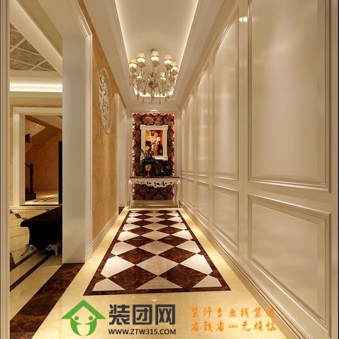 2.走廊的墙壁上可以添置一下比较有情趣的艺术画或字画之类的,比较有艺术气息。可用毛石等材料来做装饰,制造出仿古的感觉。